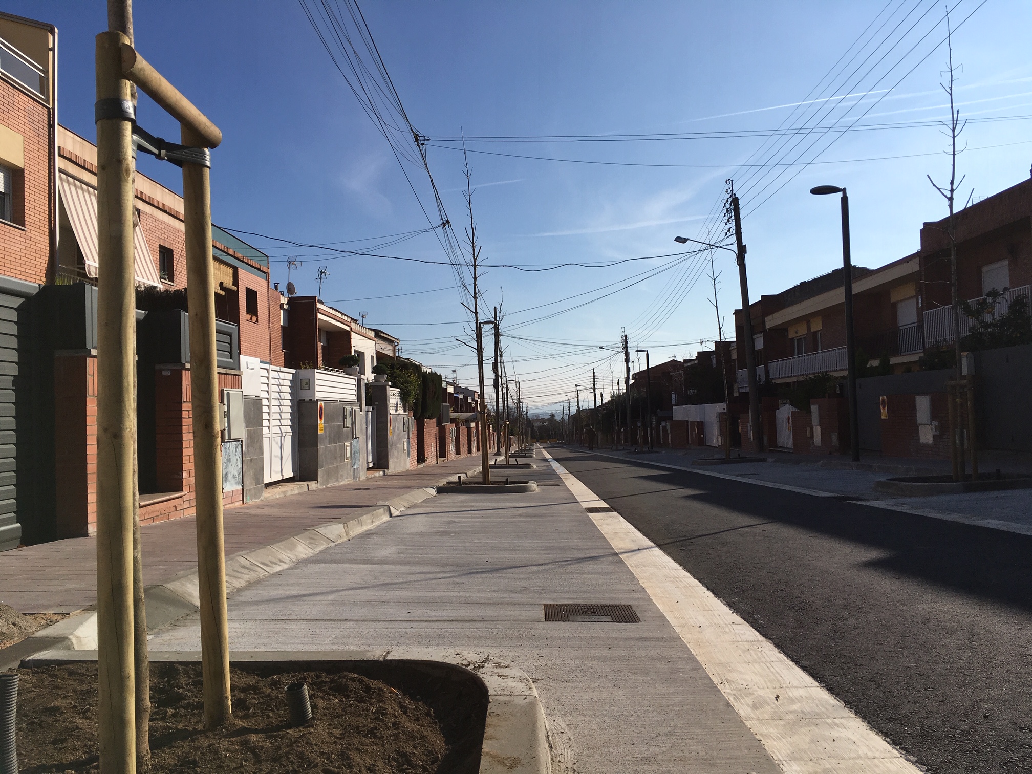 Tot i això, encara restarà pendent la retirada del cablejat telefònic, ja que malgrat que l’Ajuntament ha requerit aquesta actuació en repetides ocasions a l’empresa Telefònica, les converses amb la companyia són difícils, ja que no hi ha un interlocutor clar, i aquesta no ha confirmat encara el seu compromís. Legalment l’empresa no està obligada a canviar les línies aèries per soterrades, però sí que està obligada a utilitzar la xarxa soterrada en el cas que aquesta existeixi, com passa ara al barri de La Plana. Per aquest motiu, el consistori segueix reclamant a l’empresa que agilitzi la seva intervenció per realitzar el canvi de xarxa.
