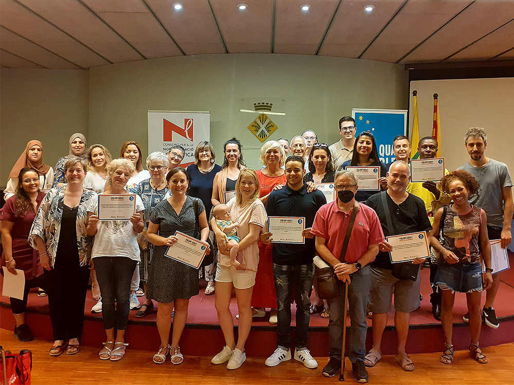 L’Oficina de Català d’Esparreguera va celebrar la setmana passada la cloenda del curs en una gran festa després de dos anys de pandèmia. Durant el curs 2021-2022 el servei ha realitzat 15 cursos de diferents nivell i ha comptat amb un total de 198 alumnes, entre els que han assistit a classe de forma presencial i els que ho han fet de manera virtual. Així mateix, el Voluntariat per la Llengua (VxL) que aquest any celebra la seva 19a edició al municipi, compta fins al mes de juny amb 72 participants, que comparteixen converses en català en el marc d’aquest programa d’intercanvi lingüístic del Consorci per a la Normalització Lingüística (CPNL), gestionat a nivell municipal per l’Oficina de Català. L’acte de cloenda, que s’ha recuperat enguany després de dos anys de pandèmia, va incloure un homenatge a les parelles lingüístiques, la XIV Trobada Gastronòmica Intercultural, un espai d’intercanvi culinari per a totes les persones convidades, i l’actuació del grup folk Som-Hi-Li.