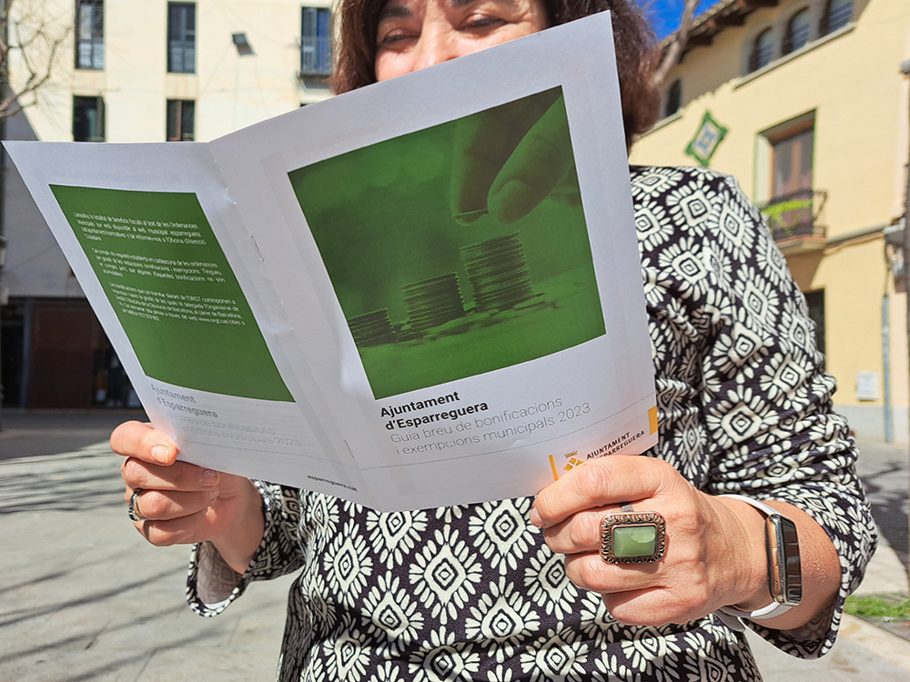 L’Ajuntament d’Esparreguera ja ha publicat la guia breu de bonificacions i exempcions municipals a les quals tenen dret tant la ciutadania com les empreses de la vila durant aquest any 2023. El document recull les noves bonificacions del 75% en l’impost sobre obres, construccions i instal·lacions si s’han fet treballs per a instal·lar punts de recàrrega per a vehicles elèctrics i del 35% de la quota tributària corresponent si una empresa s’ha acollit a qualsevol de les modalitats d’autoconsum d’energia amb generació d’origen renovable o a partir de sistemes de cogeneració. També hi ha novetats en les bonificacions en l’impost sobre vehicles de tracció mecànica, que es mantenen en un 75% per als vehicles elèctrics, mentre que els eco la redueixen fins al 45% i els més contaminants, de més de 25 anys, també disminueixen la bonificació del 75 al 35%. La guia detalla, a més, tots els descomptes dels quals es pot gaudir agrupats en funció de diferents col·lectius i situacions. El consistori n’ha editat 300 unitats en format paper que es repartiran a l’Oficina d’Atenció Ciutadana (OAC). A més, la publicació també es pot descarregar en format digital des de la web municipal.