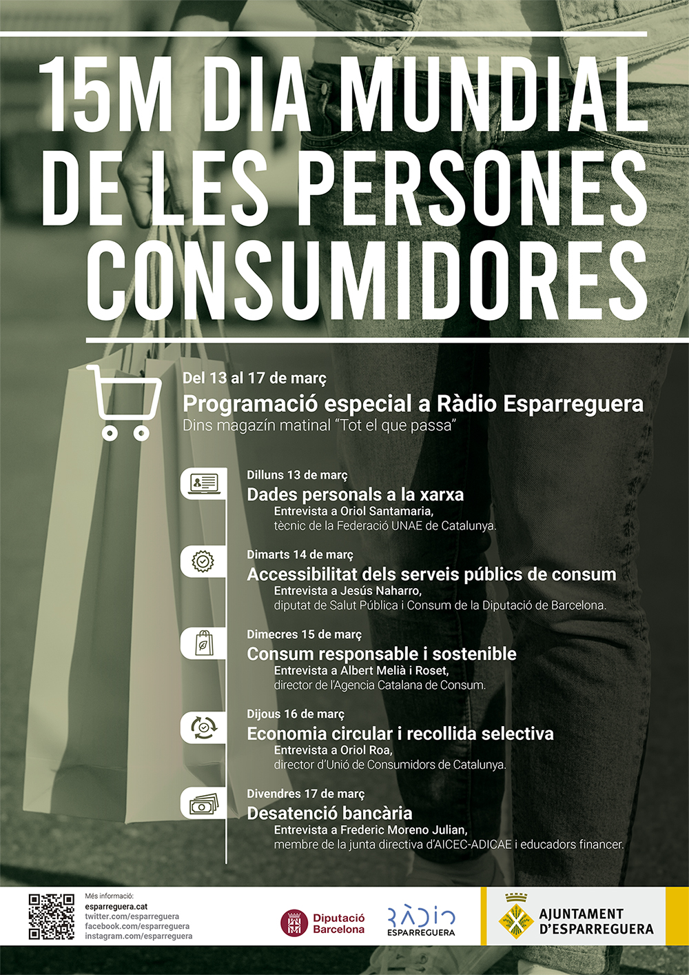 Amb motiu del 15M Dia de les persones consumidores, Ràdio Esparreguera emetrà una programació especial, dins del magazín matinal Tot el que passa, durant la setmana del 13 al 17 de març, en el qual es duran a terme un seguit d'entrevistes diàries de temàtica relacionada amb els drets dels consumidors.
