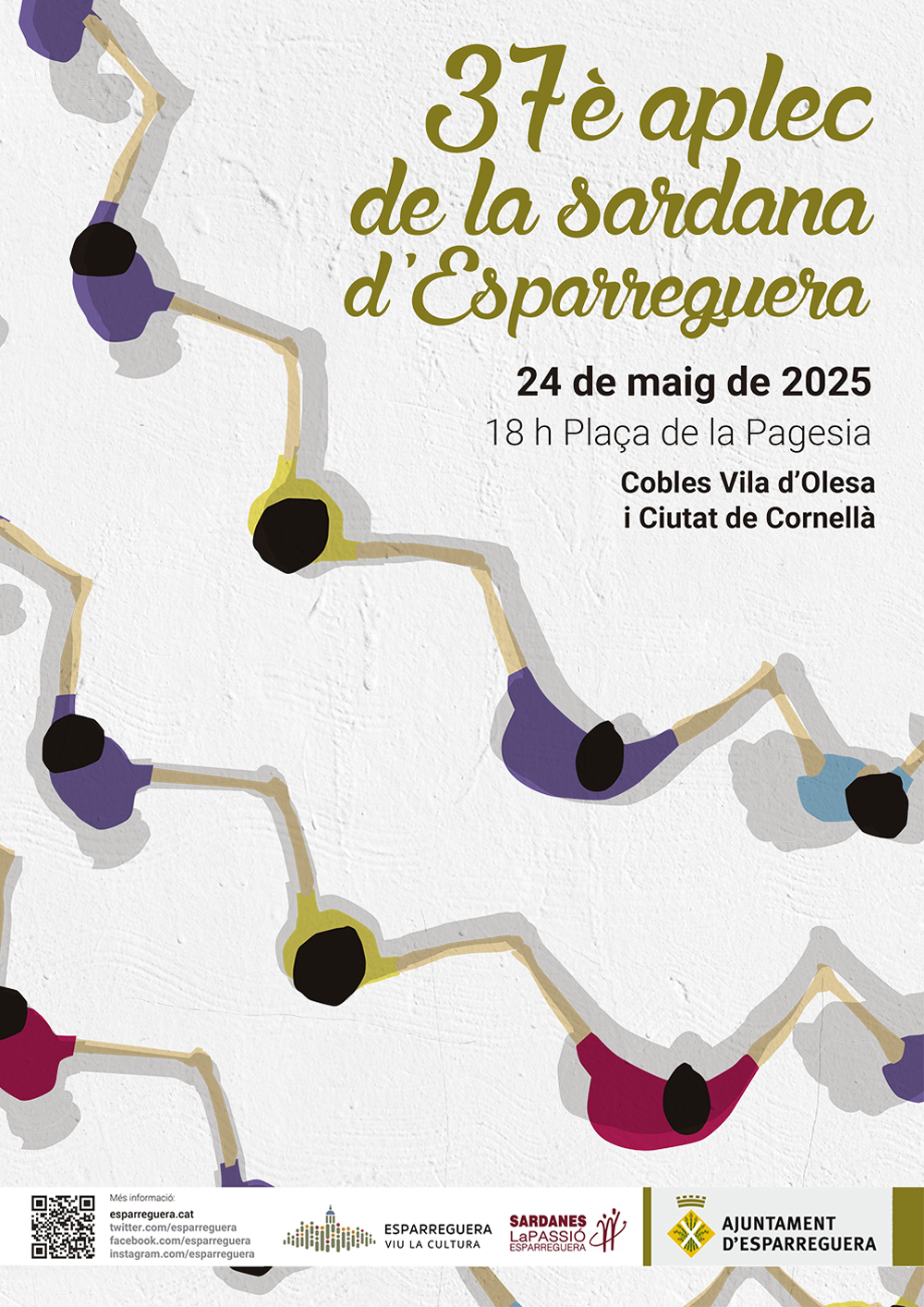 L'Ajuntament d'Esparreguera i la Secció Sardanista de La Passió organitzen el 37è Aplec de la Sardana d'Esparreguera, que se celebrarà el dissabte 24 de maig a les 18 h a la plaça de la Pagesia, i comptarà amb les actuacions de les cobles Vila d'Olesa i Ciutat de Cornellà.