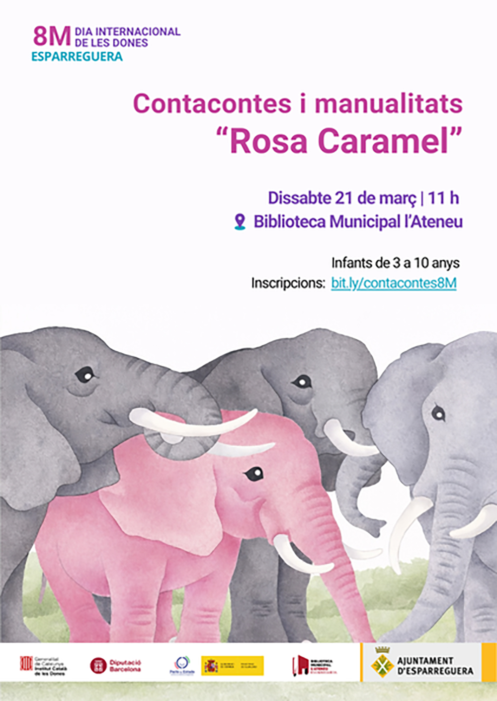 El dissabte 21 de març, a les 11 h, a la Biblioteca Municipal L'Ateneu, tindrà lloc el contacontes infantil i manualitats del llibre “Rosa Caramel”, adreçat a infants de 3 a 10 anys.