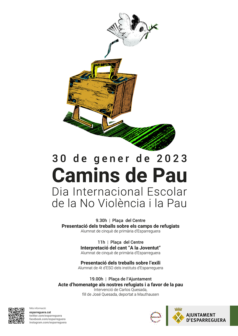 19.00 h Acte d’homenatge als nostres refugiats i a favor de la pau al món. Intervindrà Carlos Quesada, fill de José Quesada, el qual va ser deportat a Mauthausen amb els seus pares i germans.
