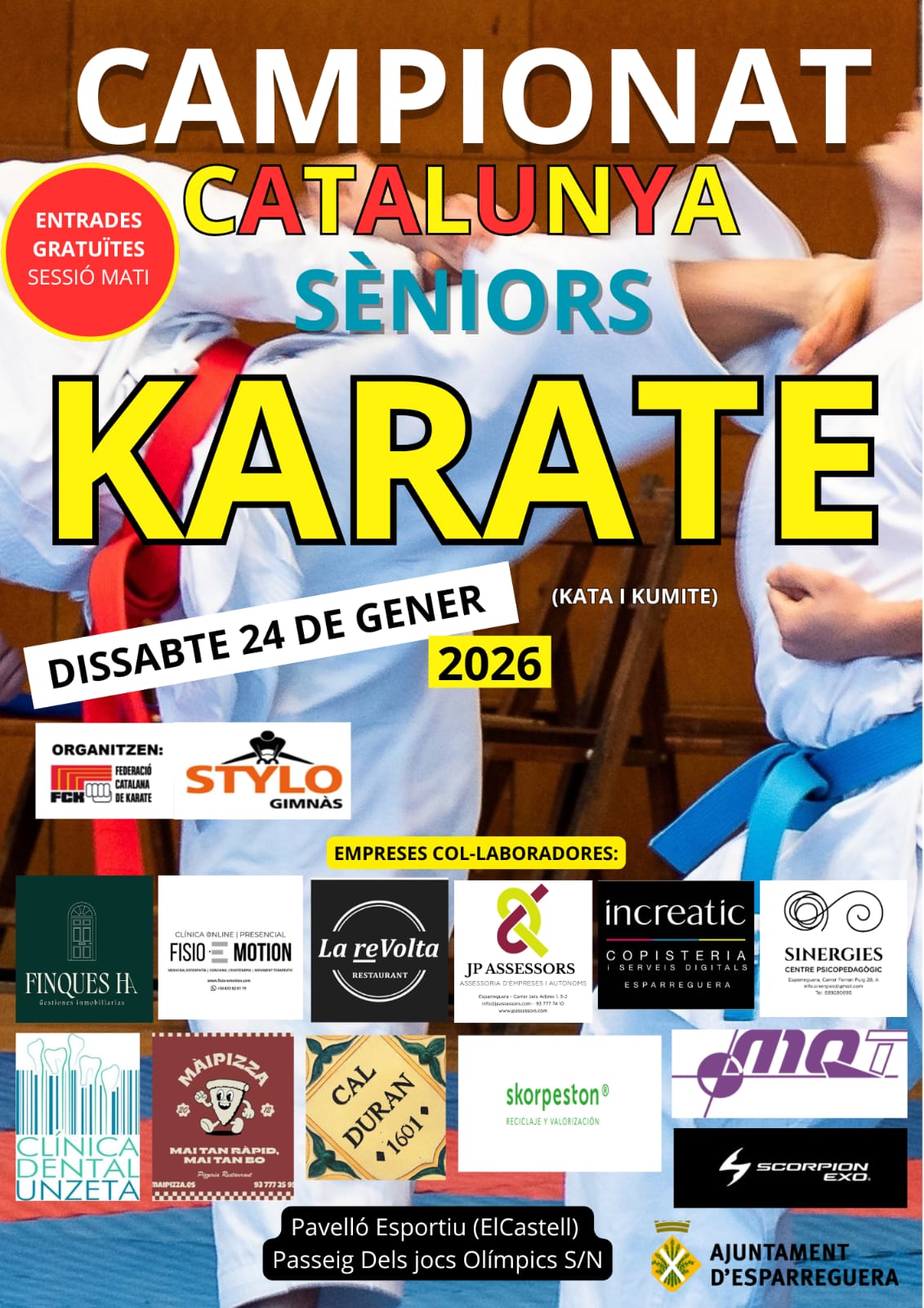 La Federació Catalana de Karate i Disciplines Associades i el gimnàs Stylo, amb la col·laboració de l'Ajuntament d'Esparreguera, organitzaran el Campionat de Catalunya de Karate Sènior 2026, en les modalitats de Kata i Kumite. El campionat tindrà lloc dissabte 24 de gener al pavelló El Castell, a partir de les 9 h, i la competició està oberta al públic.