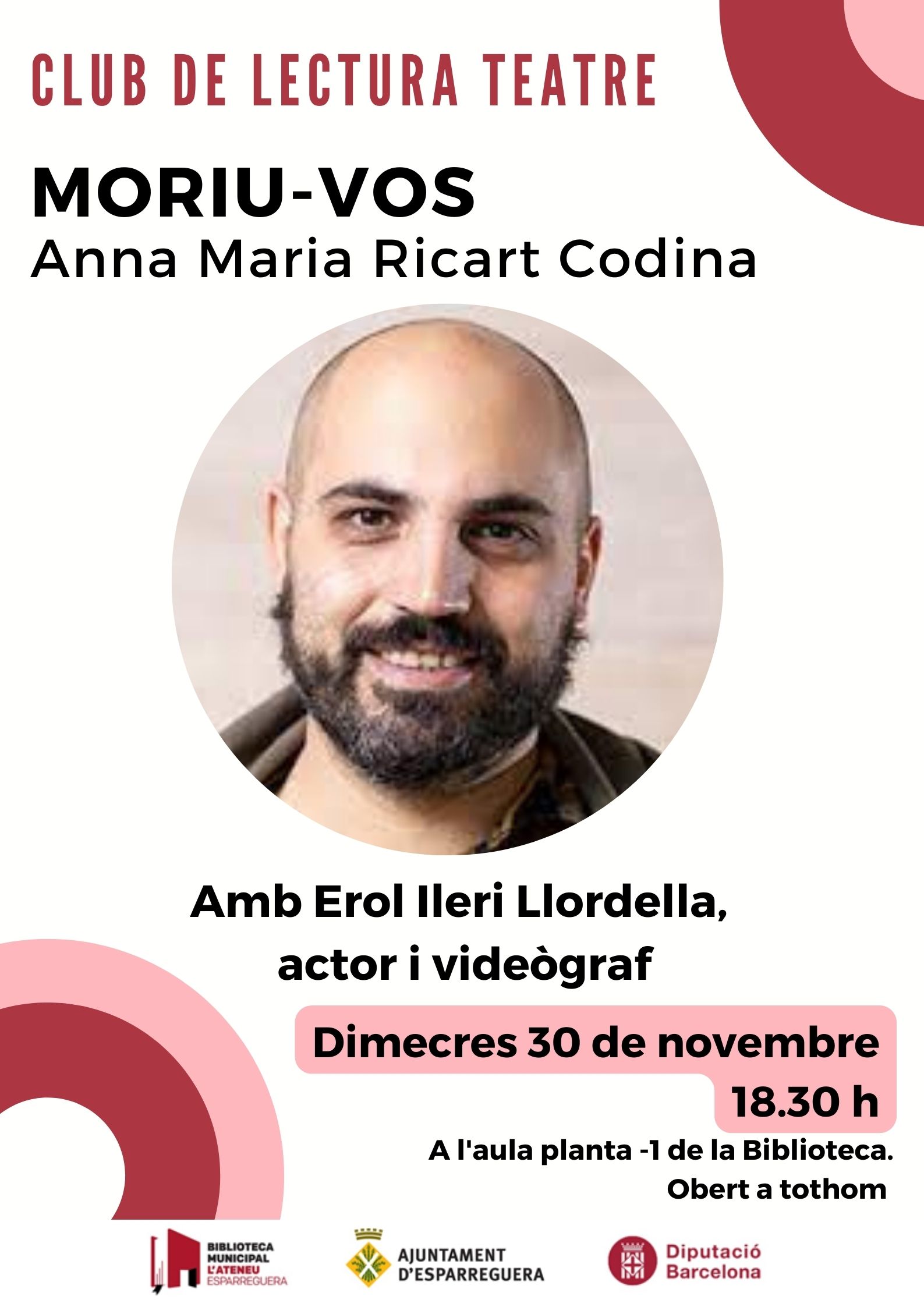 Dimecres 30 de novembre tindrà lloc el darrer Club de Teatre de l'any amb una sessió especial oberta a tothom per parlar de l'obra "Moriu-vos", d'Anna Maria Ricart Codina, que s'està representant al TNC. Ens acompanyarà Erol Ileri Llordella, actor i videògraf esparreguerí que forma part de l'equip creador de l'obra.