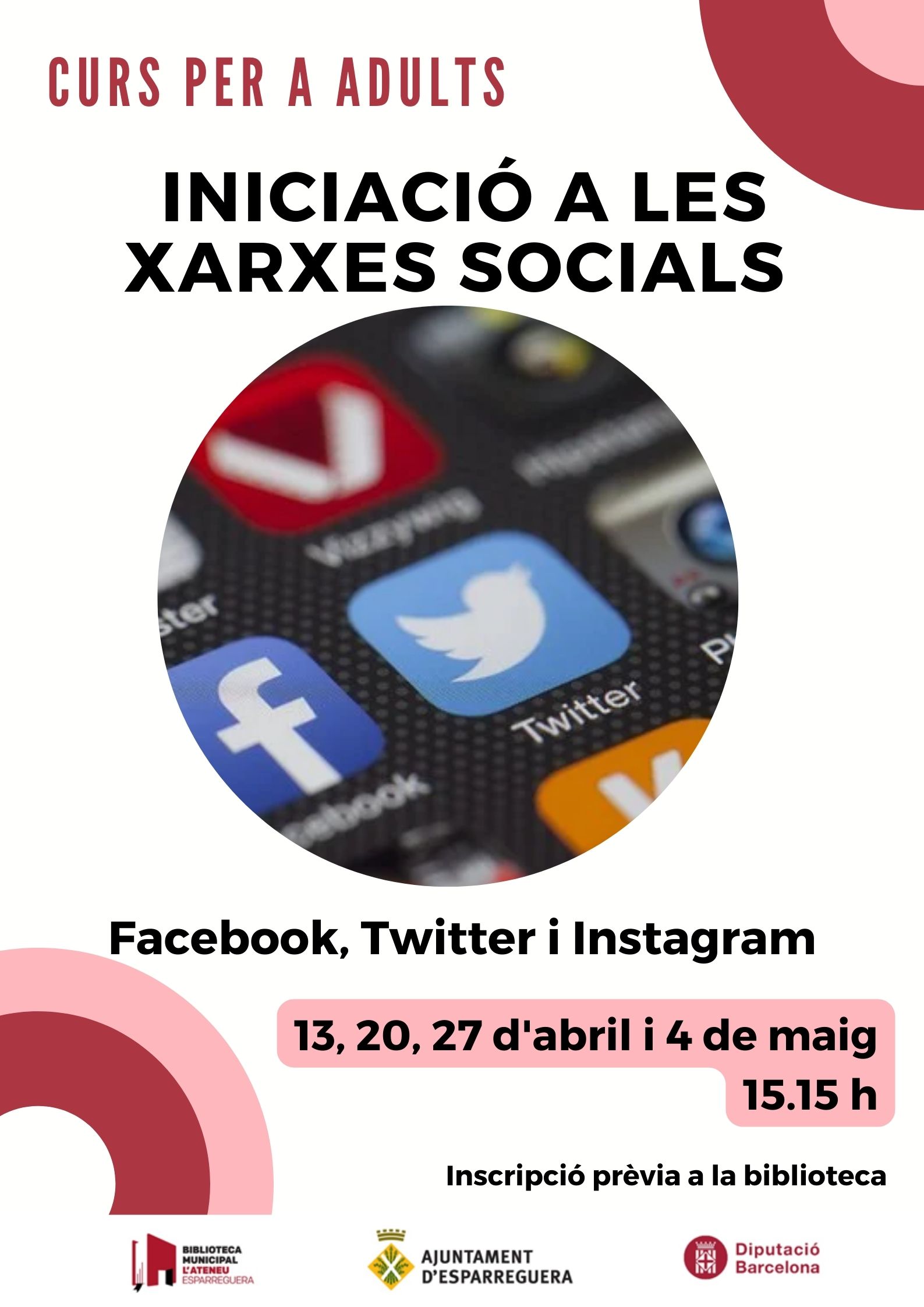 La Biblioteca organitza una nova edició del curs d'iniciació a les xarxes socials per a adults on els participants aprendran a utilitzar Twitter, Facebook i Instagram. El curs consta de 4 sessions, que seran els dijous 13, 20 i 27 d'abril i 4 de maig, a les 15.15 hores.