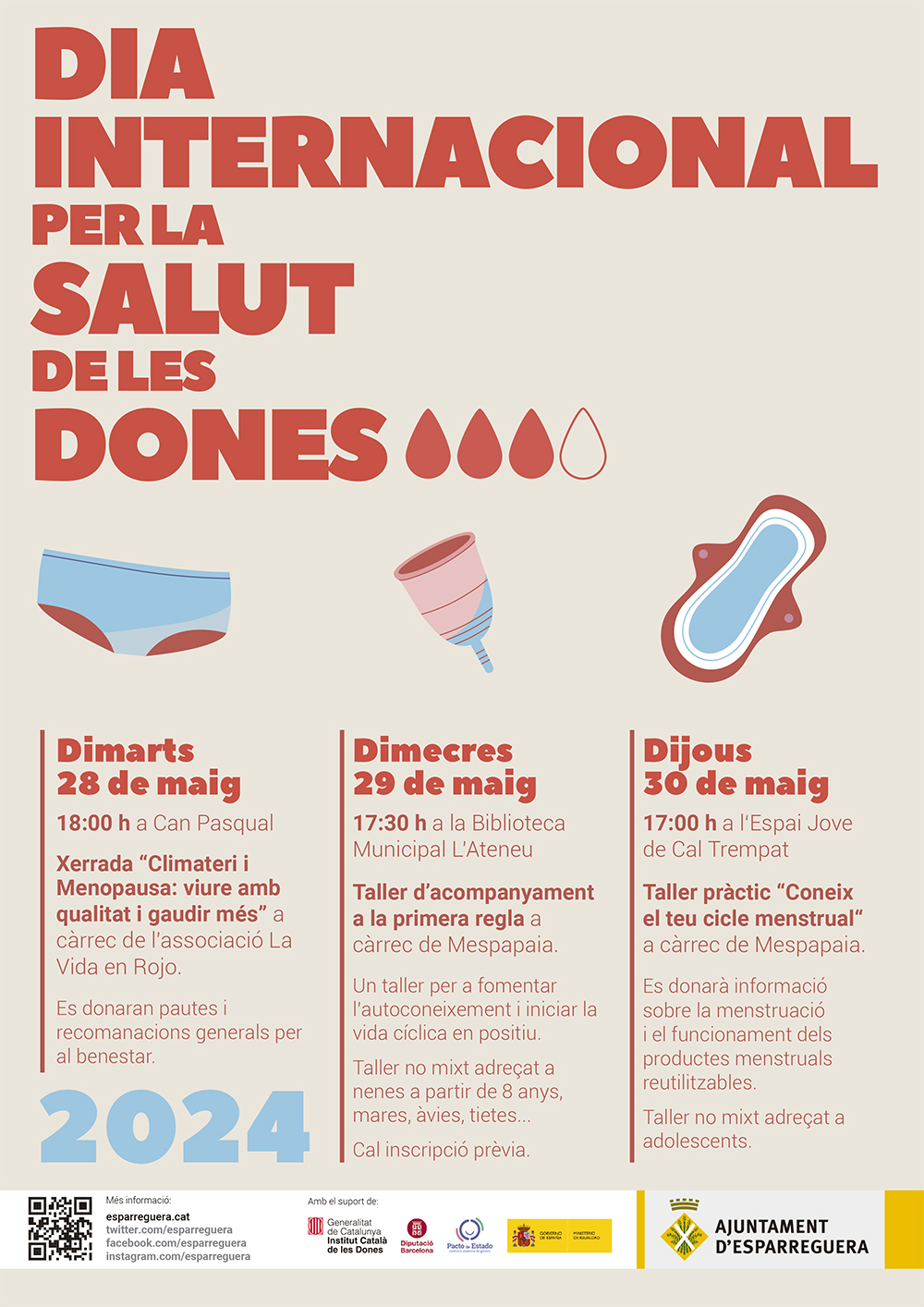 El dia 28 de maig se celebra el Dia Internacional per la Salut de les Dones amb l'objectiu de fer difusió de l’estat de salut de les dones, de les seves necessitats i demandes, i del compromís de les administracions per donar-hi resposta. Amb aquest propòsit, la Regidoria de Feminismes i LGTBI ha preparat una programació de xerrades i tallers per a commemorar l'efemèride.