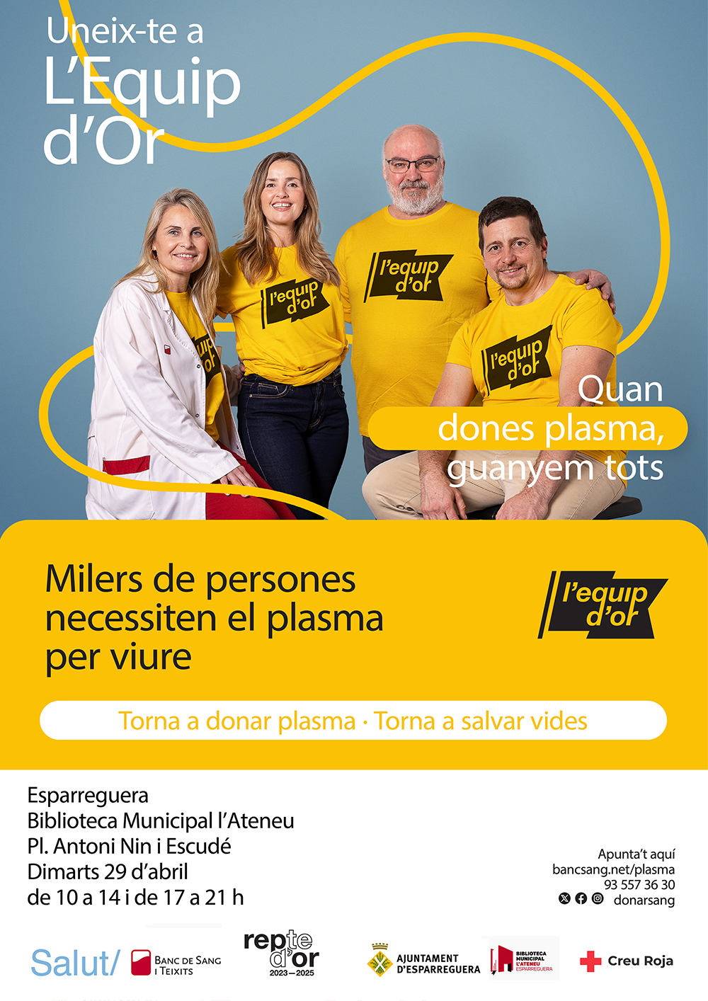 El Banc de Sang i Teixits de Catalunya instal·larà un centre de donació de sang i plasma a la Biblioteca Municipal l'Ateneu el dimarts 29 d'abril a la Biblioteca Municipal L'Ateneu. La nova donació s'inclou dins la campanya que es realitzarà durant la Setmana Mundial de les Immunodeficiències Primàries (IDP) que se celebra just després de la Setmana Santa, del dimarts 22 al dimarts 29 d’abril, i té com a objectiu arribar a les 1000 donacions de plasma.