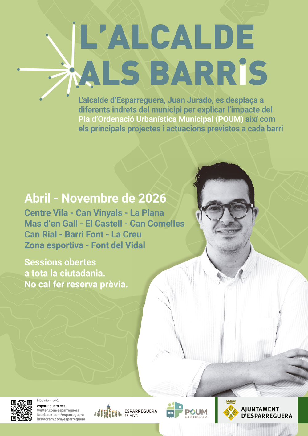 Per tal d'explicar l'impacte del Pla d'Ordenació Urbanística Municipal (POUM) així com els principals projectes i actuacions previstos als diferents punts del municipi, l’alcalde d’Esparreguera, Juan Jurado, es desplaçarà als barris.