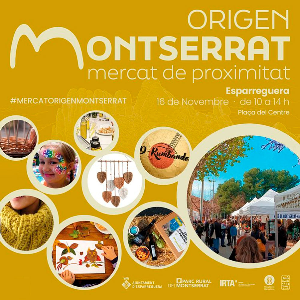 El pròxim dissabte 16 de novembre, de 10 a 14 hores, Esparreguera acollirà per primera vegada el Mercat Origen Montserrat. Una jornada per gaudir d'activitats per a tota la família i de productes de proximitat del Parc Rural de Montserrat.