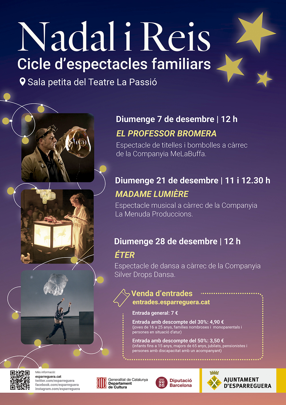 Espectacle recomanat per a petita infància, a partir de 0 anys. Compra d’entrades a entrades.esparreguera.cat.