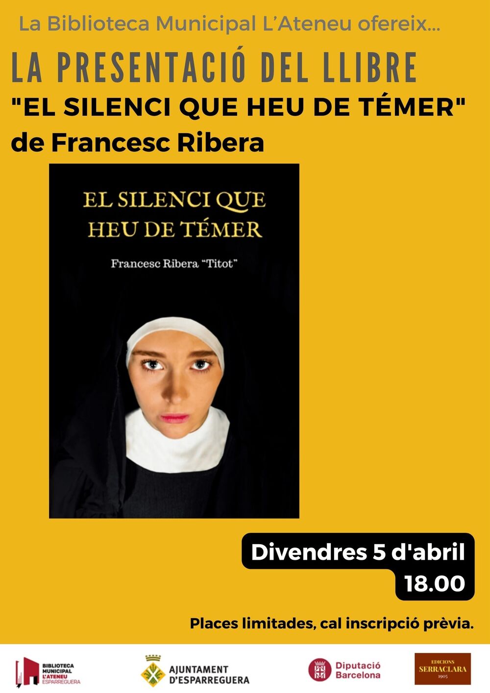 El divendres 5 d'abril Francesc Ribera, cantant, escriptor i activista, presenta el llibre El silenci que heu de témer a la Biblioteca.