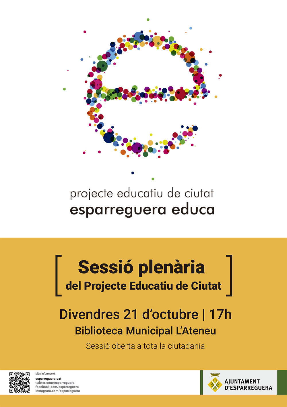 El divendres 21 d'octubre a les 17 h se celebrarà la primera sessió plenària del Projecte Educatiu de Ciutat (PEC) d'aquest curs. La sessió serà oberta a tota la ciutadania.