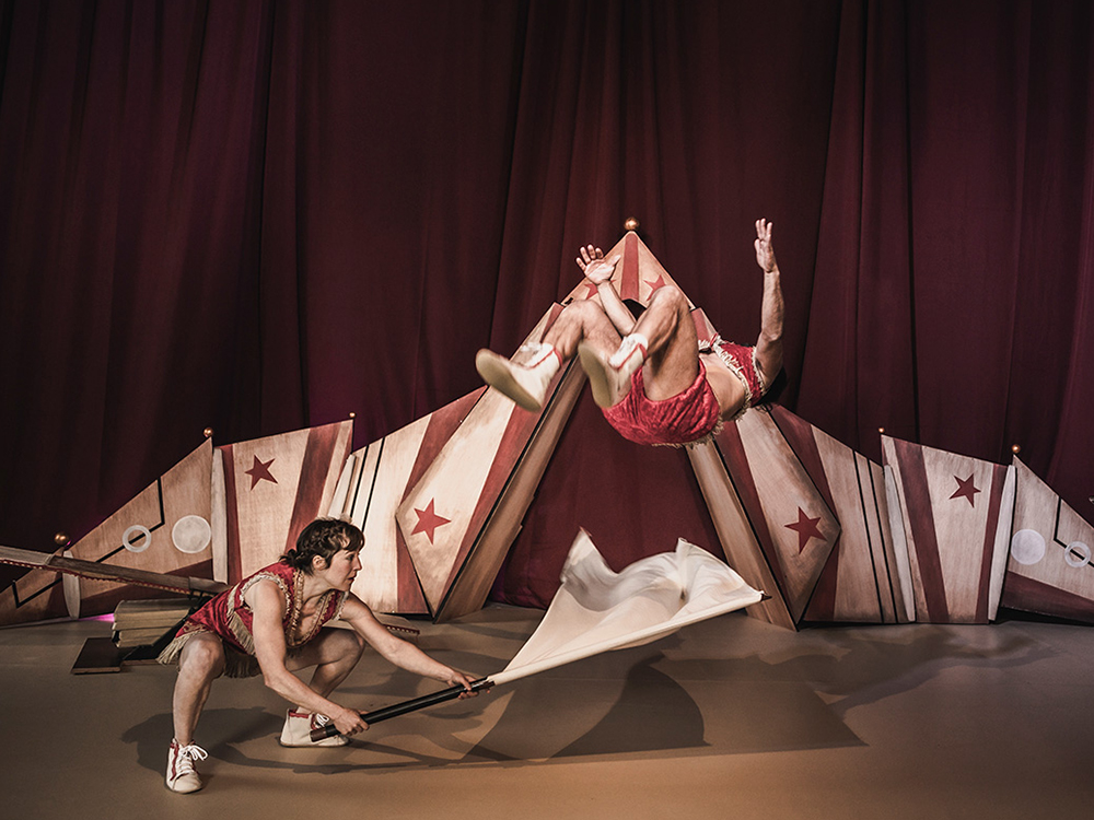 Espectacle de circ contemporani on acrobàcies i humor es combinen per parlar de la conciliació familiar amb un toc de comèdia i molta tendresa.