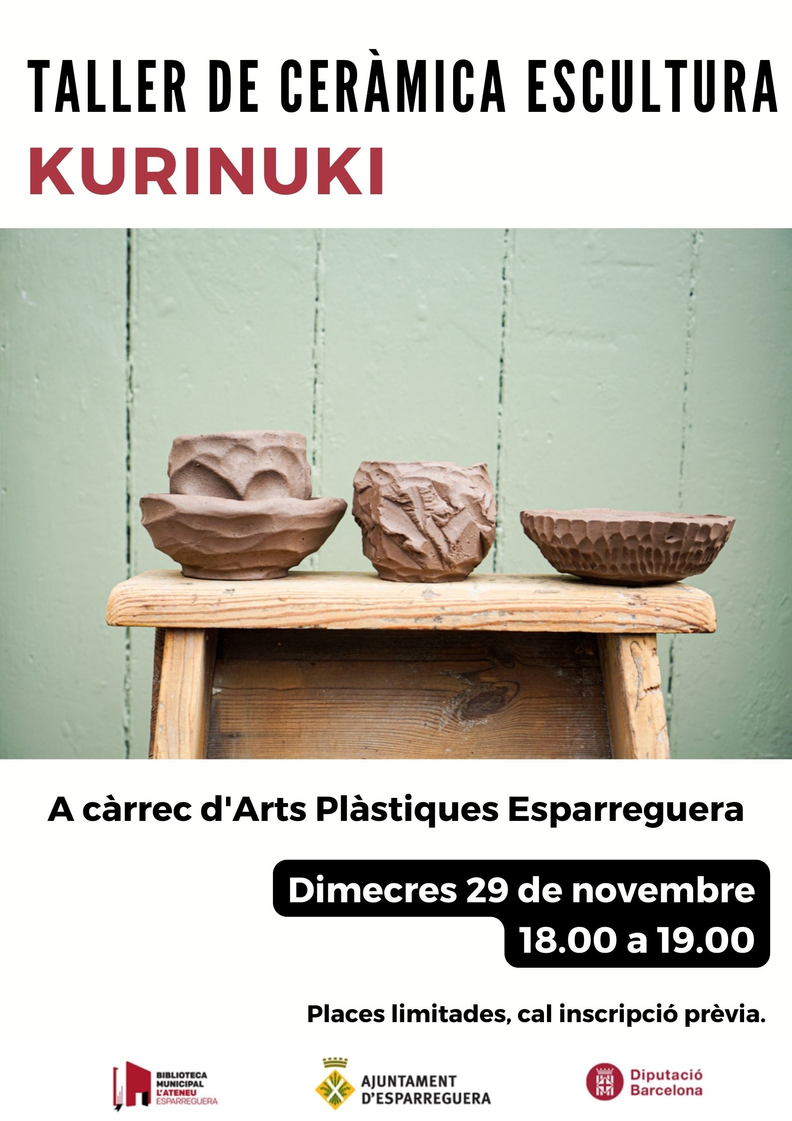 El proper dimecres 29 de novembre, a les 18.00 hores a la Biblioteca acull un taller de kurinuki, per fer una aproximació a la tècnica japonesa que combina la creació d'objectes amb l'escultura. L'activitat anirà a càrrec d'Arts Plàstiques Esparreguera.