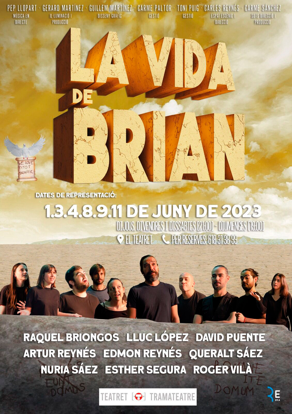 El Teatret acull, durant la primera quinzena de juny, sis representacions de l'obra de teatre "La vida de Brian", un espectacle que explica les peripècies d'un personatge que neix en un pessebre de Betlem el mateix dia que Jesucrist.