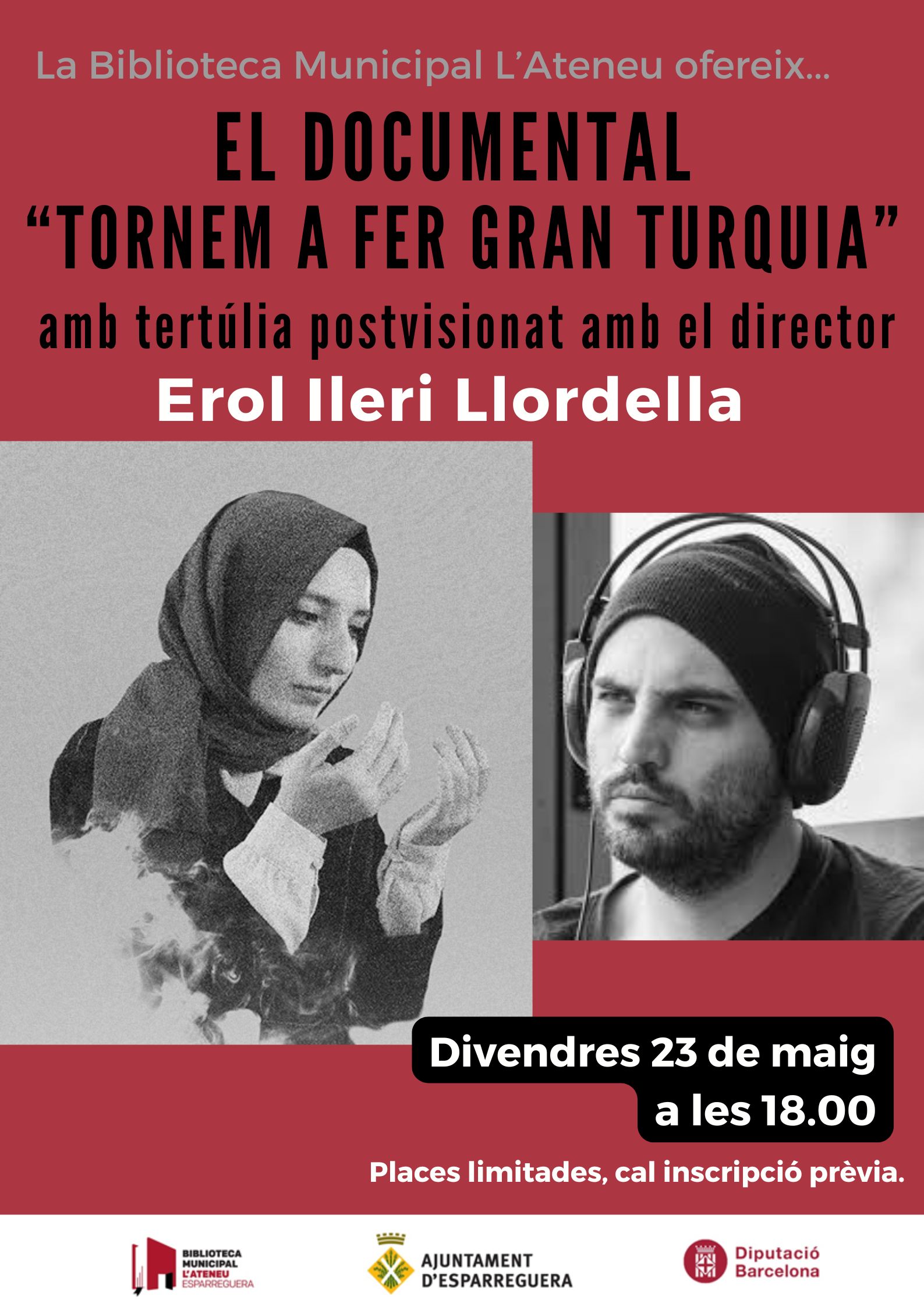 El divendres 23 de maig la Biblioteca acollirà una sessió especial amb el visionat del documental "Tornem a fer una gran Turquia" i la tertúlia posterior amb l'esparreguerí Erol Ileri Llordella, director del film. El documental recull l'experiència de l'Erol, de pare turc i mare catalana, en un viatge a Turquia per redescobrir les seves arrels i comprendre les tensions polítiques del país.