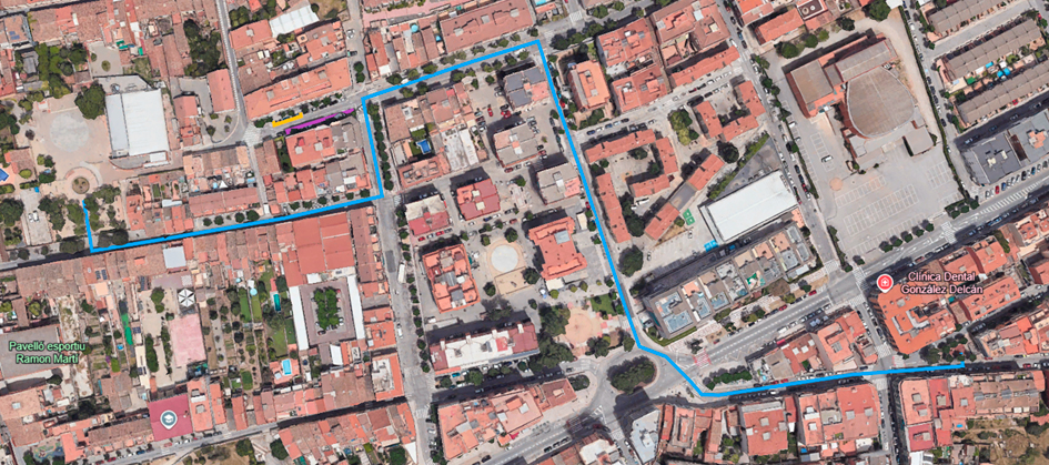 Recorregut: plaça de Santa Eulàlia, carrer Gran, carrers del Taquígraf Garriga i dels Arbres i plaça de la Pagesia.