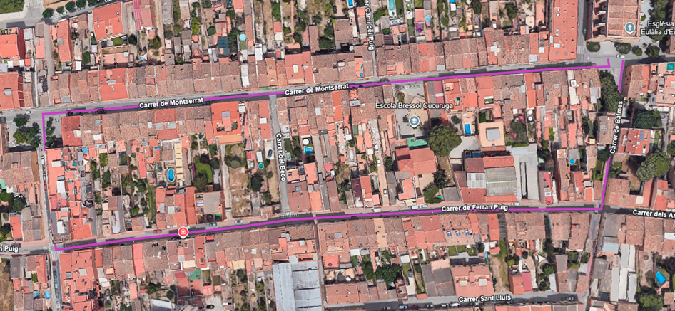 Recorregut Batuco: plaça del Pi, carrers del Camí Ral, de la Font del Vidal, de Barcelona, de Sant Joan, de Baix i plaça del Centre.