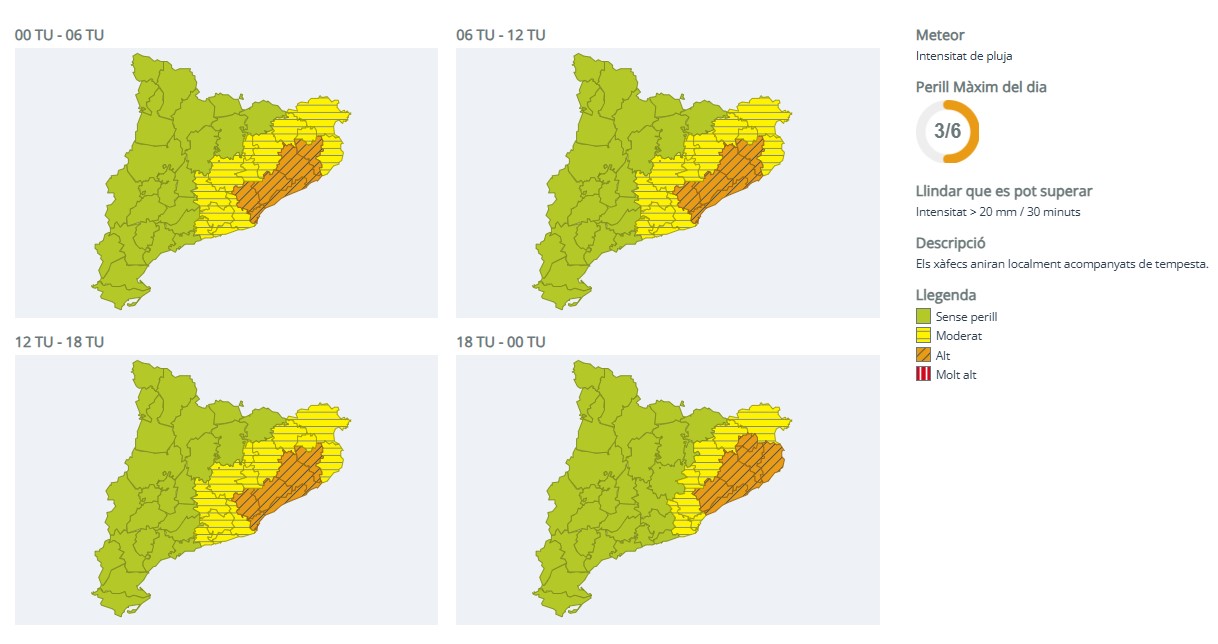 Les pluges poden superar els 20 mm en 30 minuts i anar acompanyades de tempesta i vent.