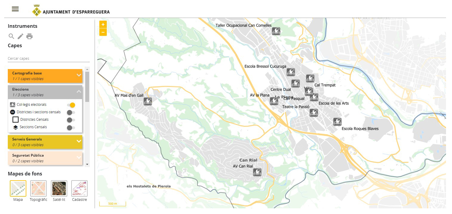 Per consultar el col·legi electoral assignat, cal entrar a les llistes del cens electoral o entrar el Geoportal de l’Ajuntament d’Esparreguera i introduir l’adreça del padró municipal.