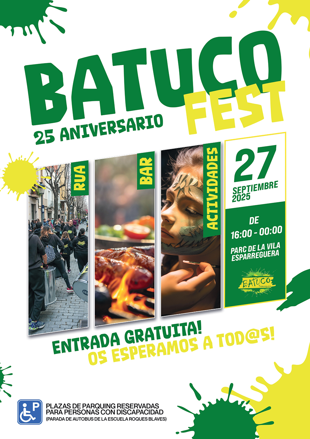 El dissabte 27 de setembre, Batuco celebra el seu 25è aniversari amb una festa, de 16 a 0 h, al parc de la Vila. Hi haurà rua, activitats i servei de bar.