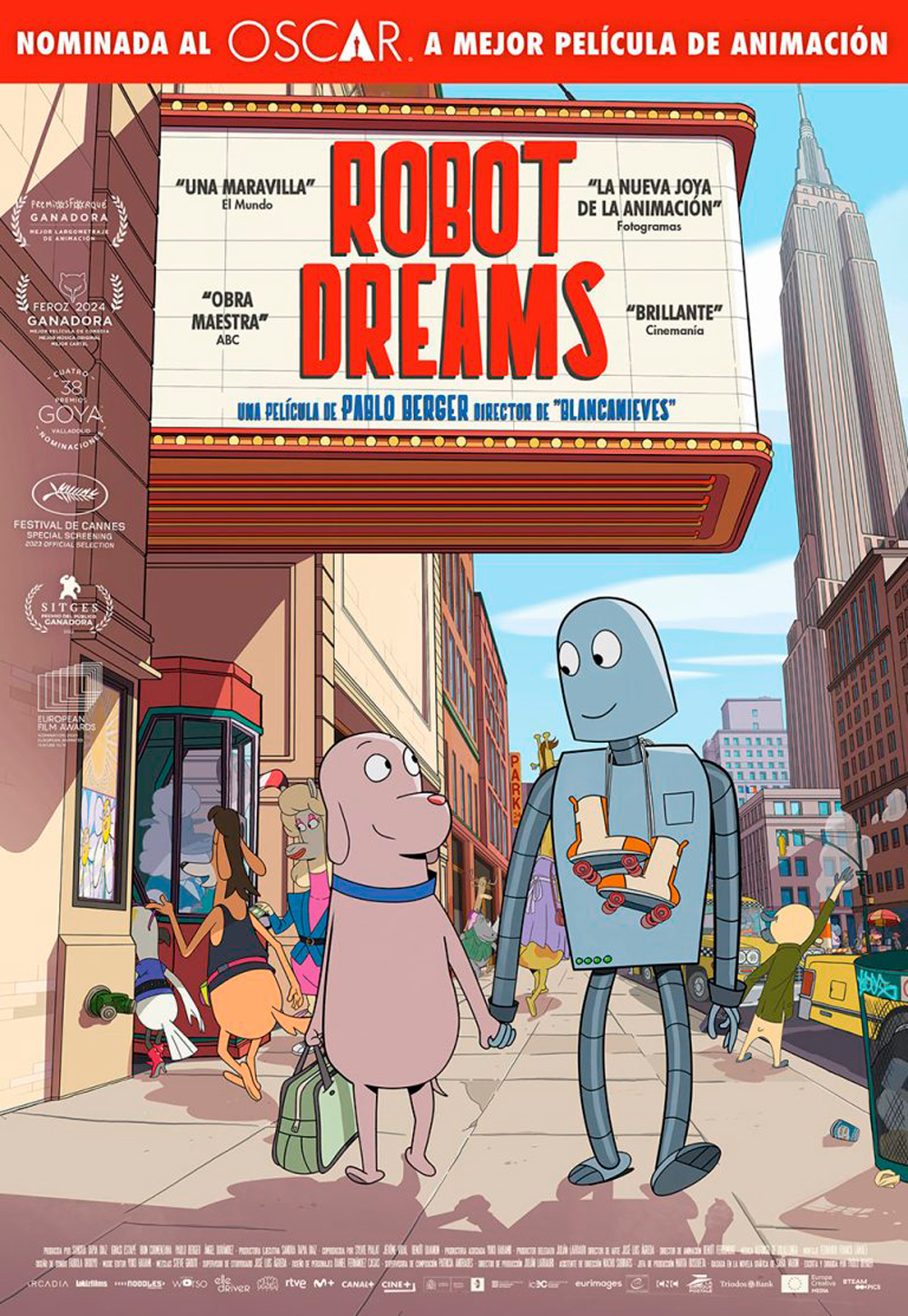 En el marc del Cicle Gaudí, el dijous 20 de juny a les 19 h a la sala d'actes de Can Pasqual, es projectarà la pel·lícula "Robot Dreams" dirigida per Pablo Berger.