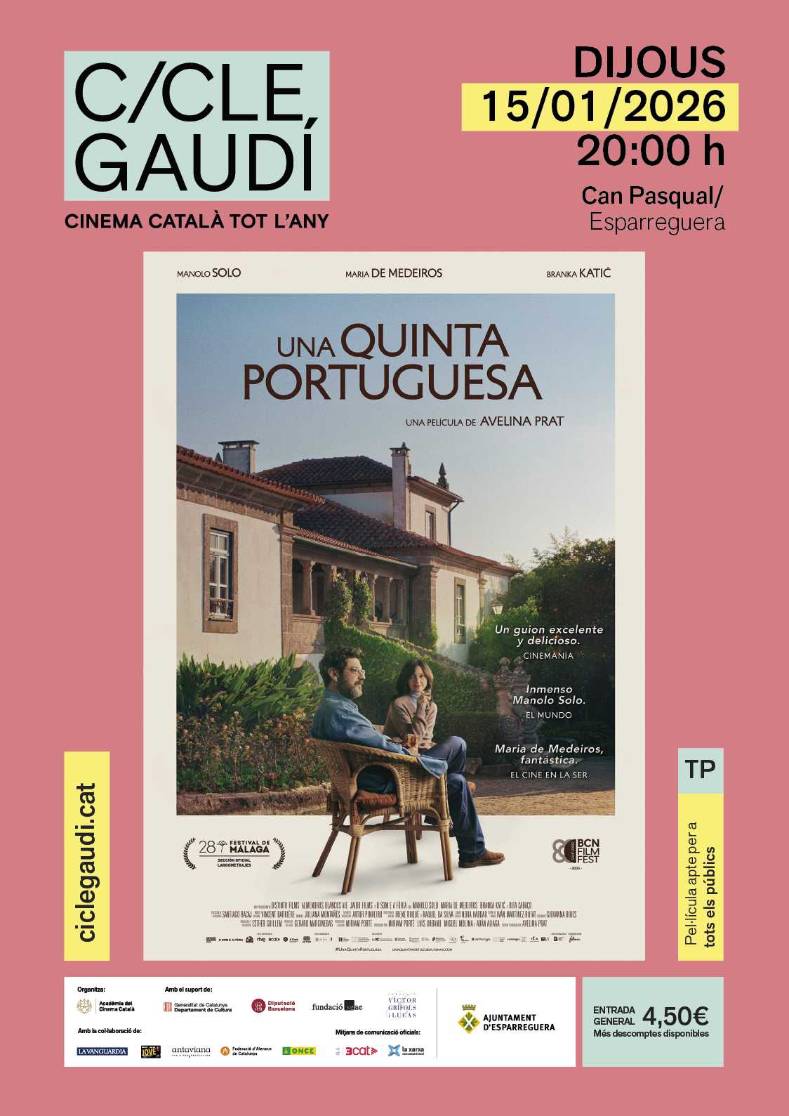 En el marc del Cicle Gaudí, el dijous 15 de desembre a les 20 h, la sala d'actes de Can Pasqual acollirà la projecció de la pel·lícula "Una quinta portuguesa" dirigida per Avelina Prat.