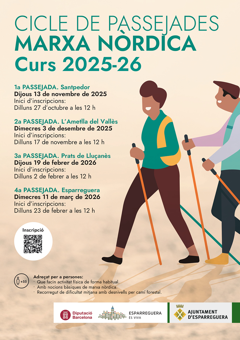 El Servei municipal d'Esports organitza un cicle de passejades de marxa nòrdica per diversos indrets de les comarques de Barcelona. La quarta passejada serà a Esparreguera.