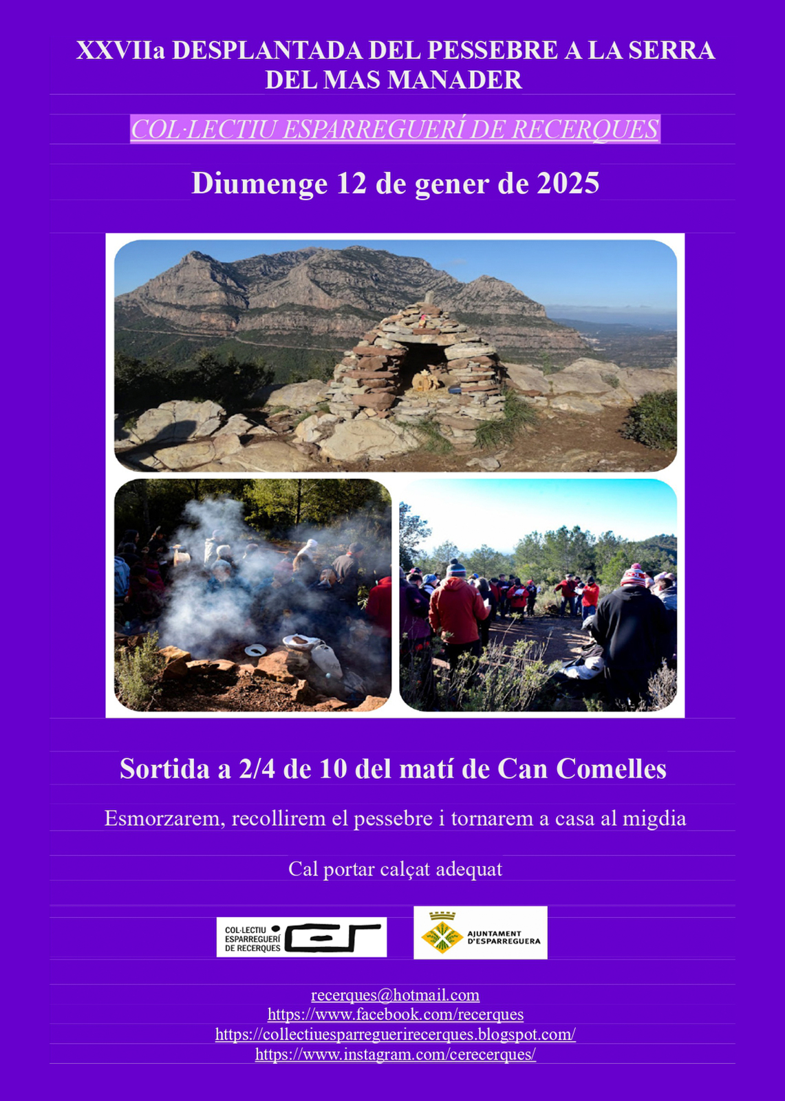 Desplantada del pessebre a la serra del Mas Manader organitzada pel Col·lectiu Esparreguerí de Recerques. Sortida a les 9.30 h davant de Can Comelles.