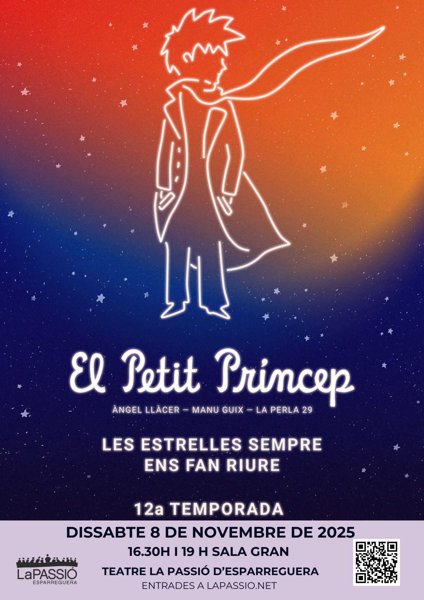 La sala gran del Teatre de La Passió acull el dissabte 8 de novembre la representació d'"El Petit Príncep" d’Àngel Llàcer i Manu Guix.