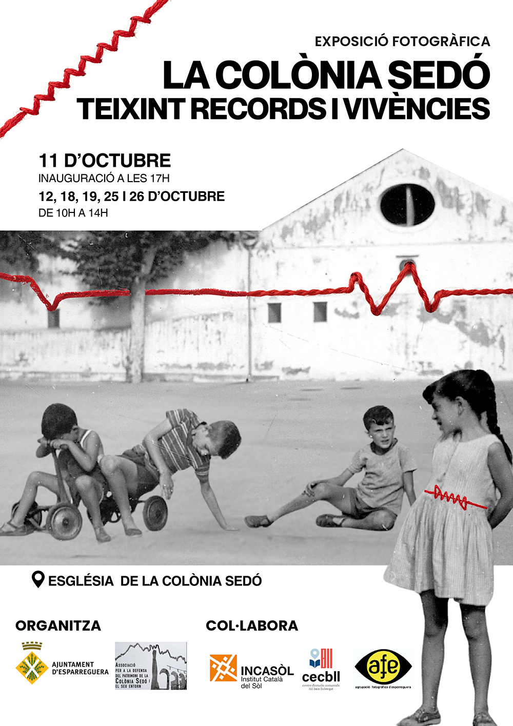 La inauguració de l'exposició "La Colònia Sedó. Teixint vivències i records" tindrà lloc dissabte 11 d'octubre a les 17 h. La mostra es podrà veure també els dies 12, 18, 19, 25 i 26 d'octubre de 10 a 14 h.