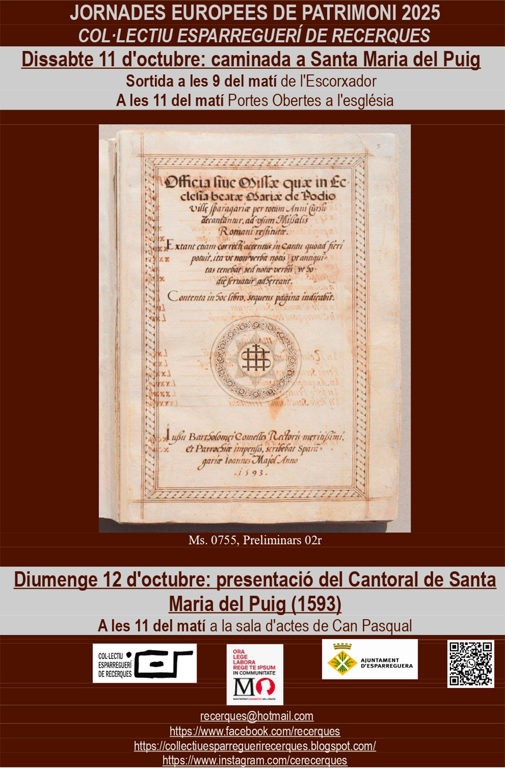 11 h Presentació del Cantoral de Santa Maria del Puig (1593), a la sala d'actes de Can Pasqual.