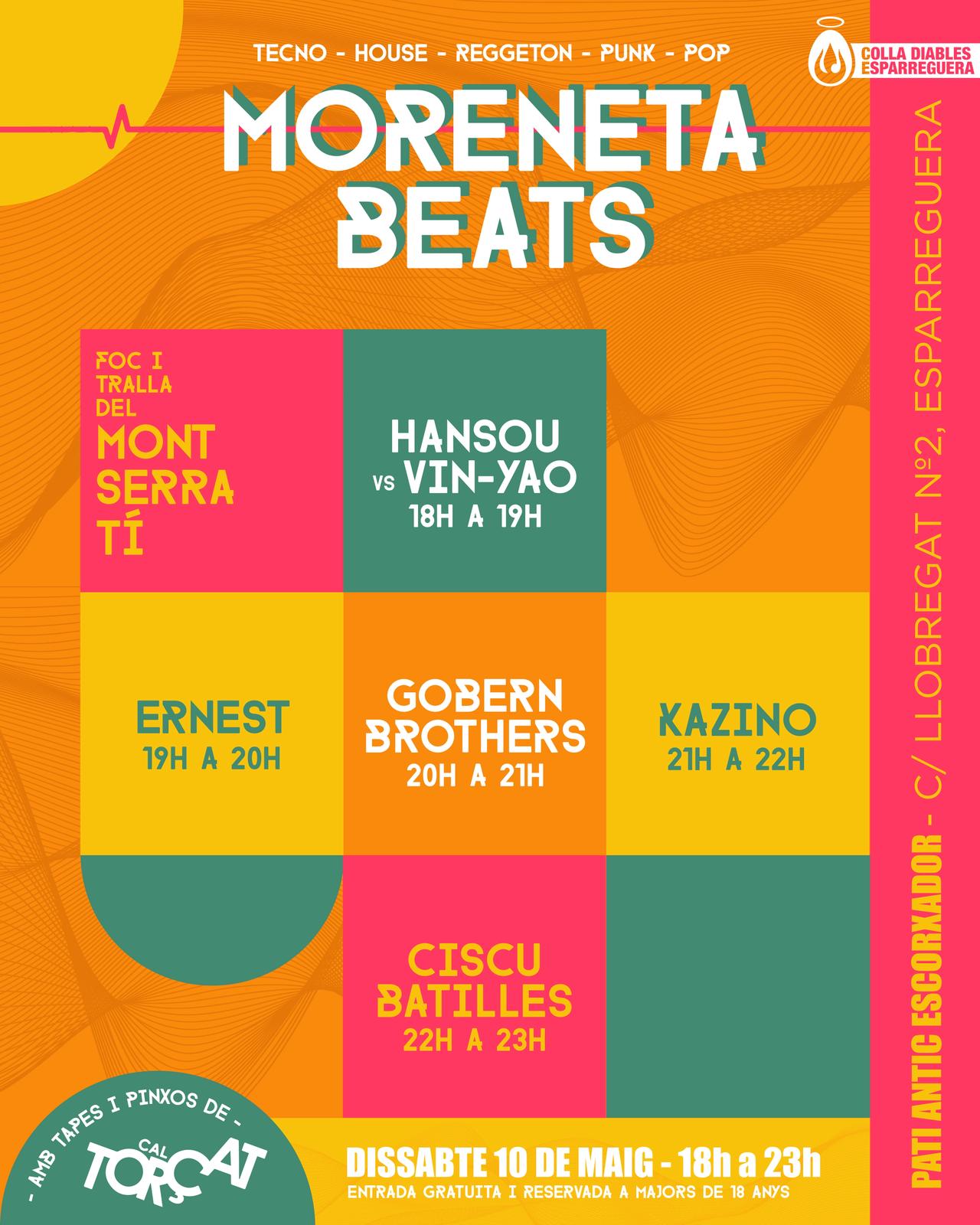 La Colla de Diables d'Esparreguera organitza el dissabte 10 de maig, al pati de l’antic Escorxador, Moreneta Sounb Beats, una sessió de tecno, house, reggeton, punk i pop.