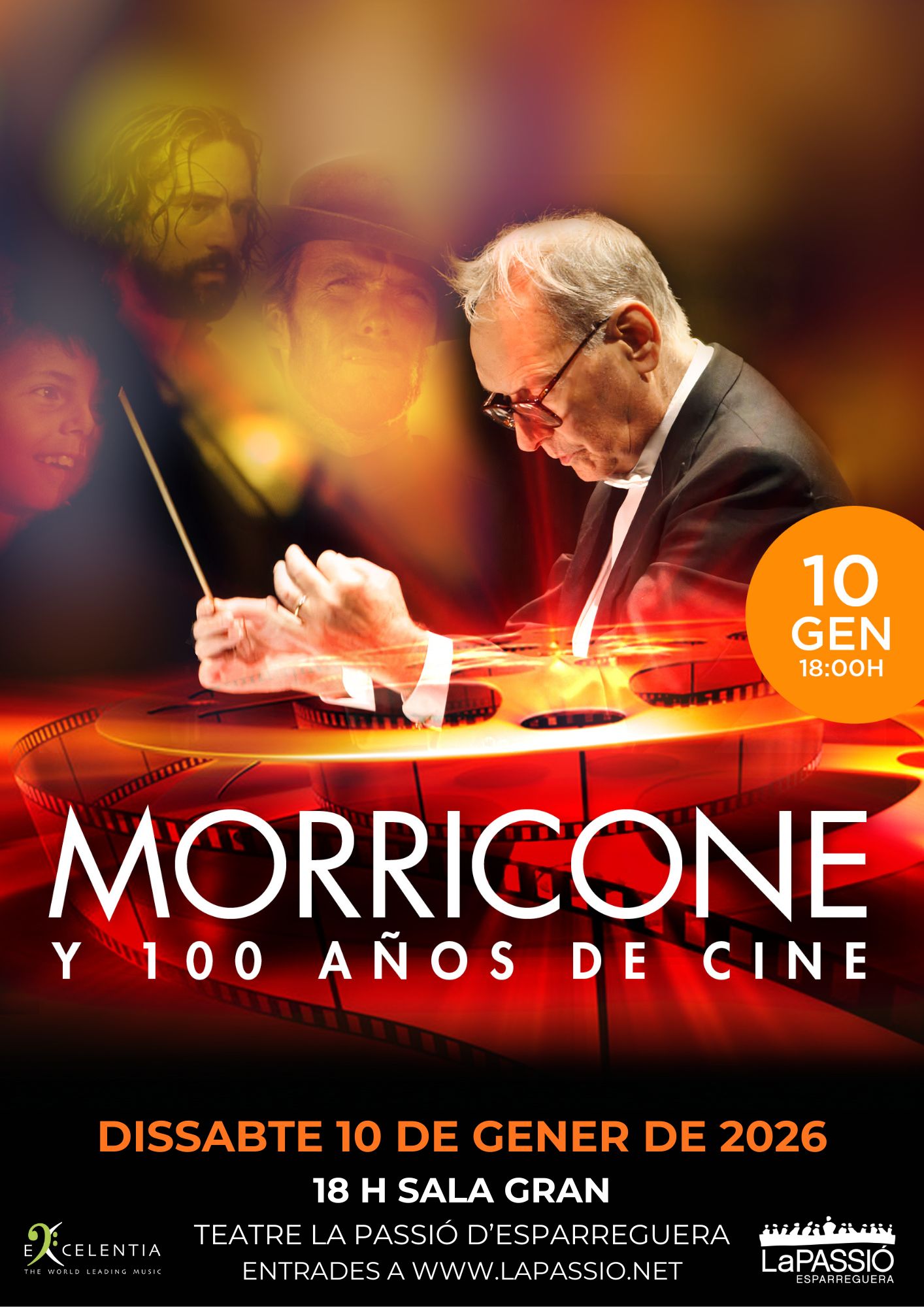 La sala gran del Teatre de La Passió acull el dissabte 10 de gener el concert homenatge a Ennio Morricone i als 100 anys del cinema, interpretat per la Royal Film Concert Orchestra, sota la direcció de Fernando Furones.