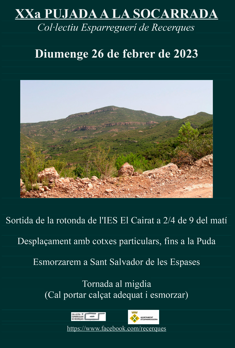 El Col·lectiu Esparreguerí de Recerques organitza XXa pujada a la Socarrada pel diumenge 26 de febrer.